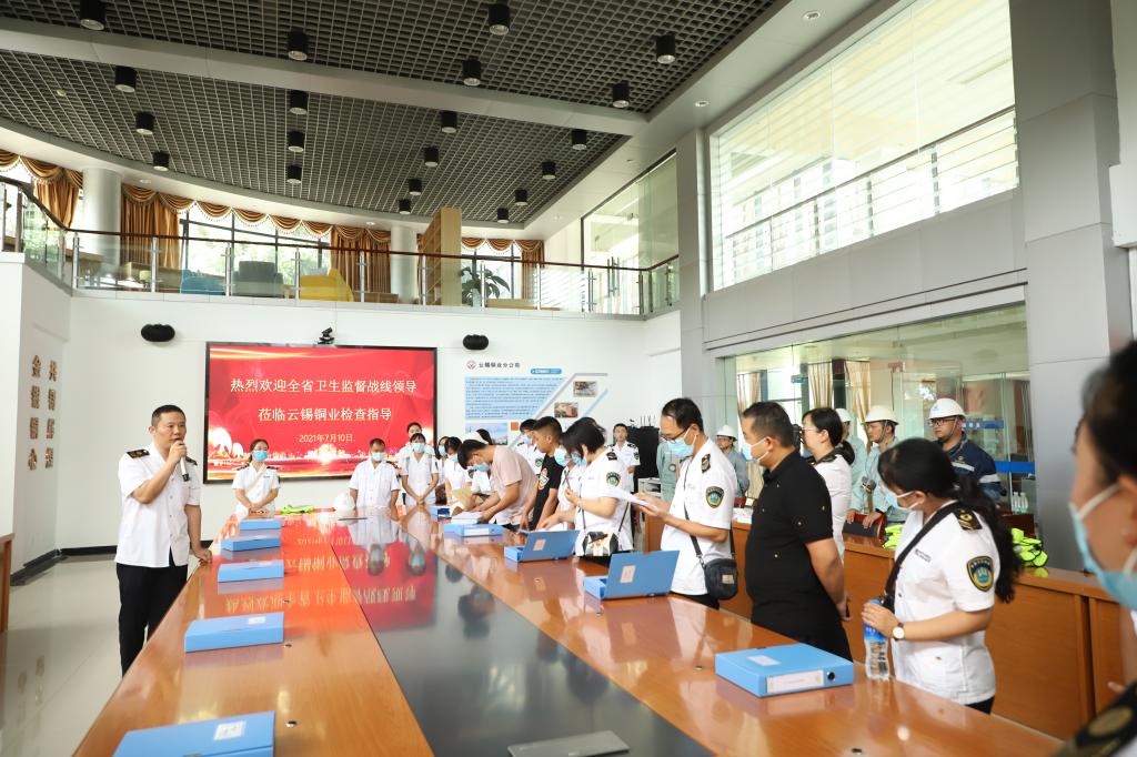 7月10日,由云南省12個(gè)州市組成的衛(wèi)生健康綜合監(jiān)督組到銅業(yè)分公司檢查指導(dǎo)職業(yè)健康管理工作。
