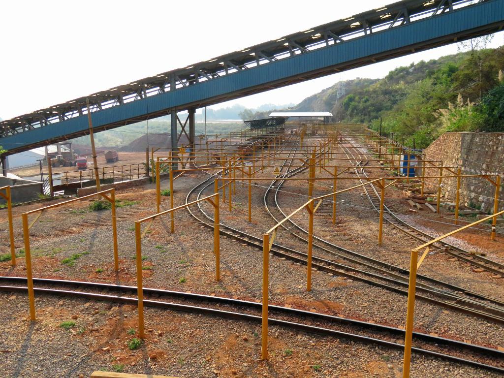 1360快速運輸線中的丙坑運輸線調車場卸礦位于站官家山段終點站,是大屯錫礦硫化錫銅礦運輸技改工程中的一個主要系統,也是井下礦石運輸的終點站。每天在此線路往返的運礦列車達60多趟,擔負著每年100多萬噸氧硫礦石的卸礦和3萬多次礦車周轉的任務。隨著技改主體工程完工,在使用了近3個月后,為進一步優化完善調車場運行條件,動運車間組織釘道隊精干力量,用7天時間對調車場卸礦站鐵道運輸線路進行了全面升級改造。