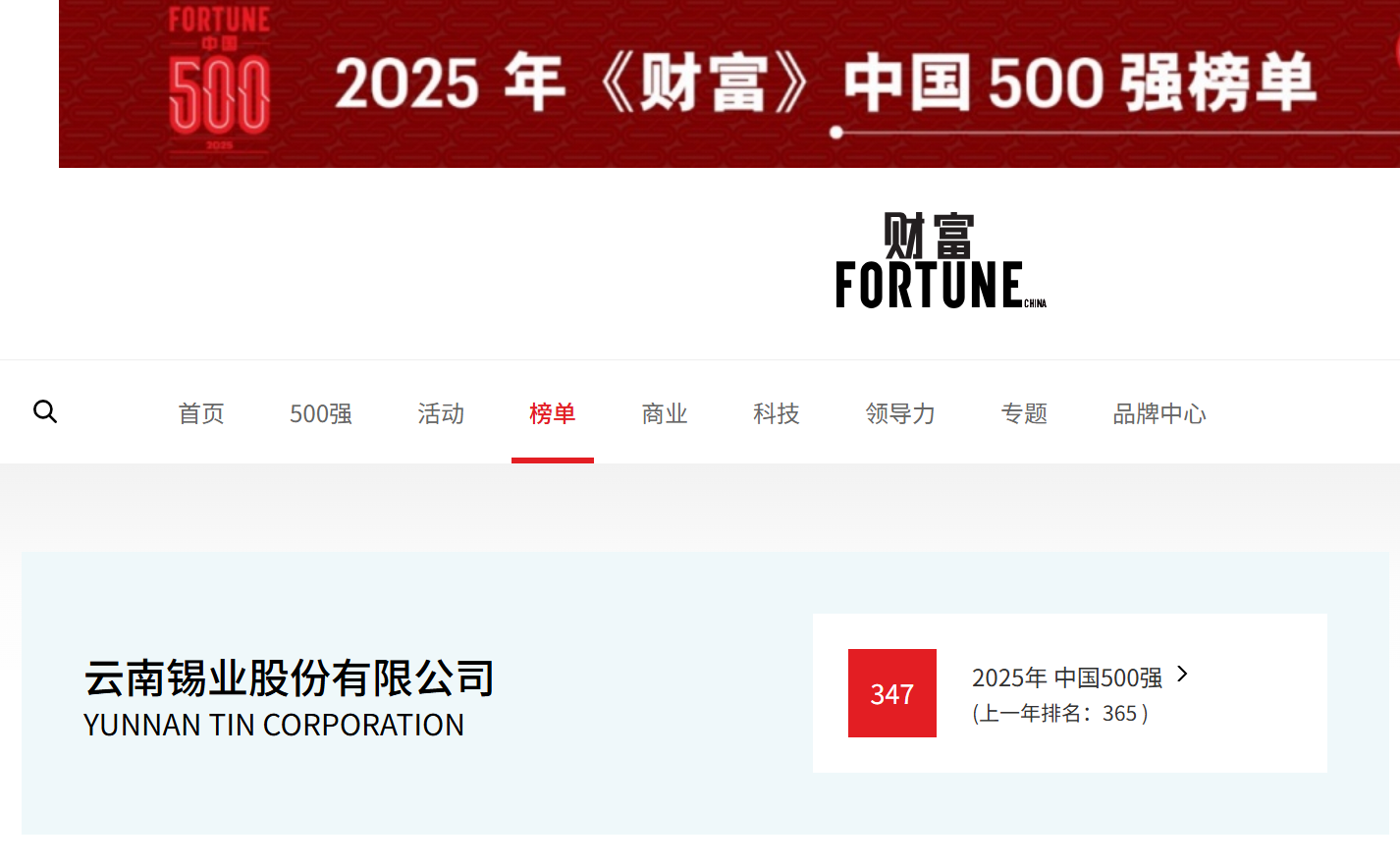 上升18位!錫業股份上榜2025年《財富》中國500強位列347位