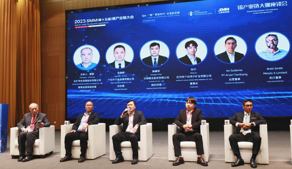 在圓桌價格論壇環(huán)節(jié),錫業(yè)股份圍繞當(dāng)期錫精礦加工費、原材料采購、如何利用套期保值工具應(yīng)對風(fēng)險及產(chǎn)業(yè)未來發(fā)展動向等問題進行交流。