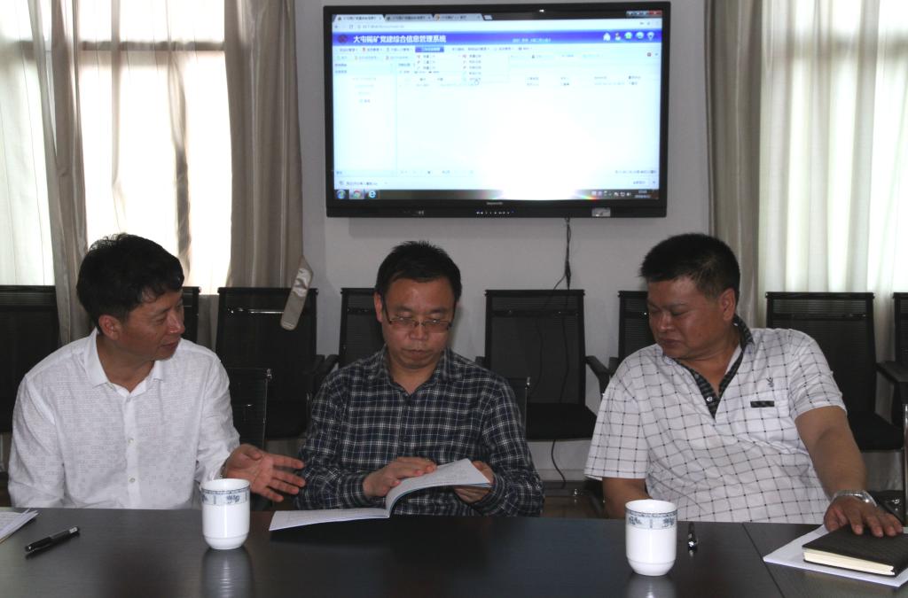 “目前有多少黨員?‘三會(huì)一課’制度是否按要求執(zhí)行?黨員對(duì)一系列黨建工作是什么態(tài)度?”姚家立在檢查三坑黨總支黨員活動(dòng)室建設(shè)工作時(shí),詢問(wèn)了黨建工作相關(guān)情況。三坑黨總支書記逐一回答了姚副書記的提問(wèn),并就所開展的黨建工作情況作了匯報(bào),其中,組織黨員觀看央視專題片《榜樣》,開展“看榜樣、學(xué)榜樣、爭(zhēng)做榜樣”活動(dòng);設(shè)立坑下黨員活動(dòng)陣地,結(jié)合安全工作推行現(xiàn)場(chǎng)標(biāo)準(zhǔn)化定置管理等特色實(shí)踐活動(dòng)。三坑坑長(zhǎng)對(duì)坑口人力資源配置、今年以來(lái)的生產(chǎn)組織情況作了匯報(bào)。組織人力資源部門介紹并演示了正在測(cè)試的大屯錫礦黨建綜合信息管理系統(tǒng),該系統(tǒng)分為組織管理、黨員管理、干部人才管理、工作任務(wù)管理和學(xué)習(xí)交流五大模塊,具備權(quán)限分級(jí)、保密性強(qiáng)、覆蓋面廣和兼有互動(dòng)等特點(diǎn),通過(guò)系統(tǒng)建設(shè)與管理,可實(shí)現(xiàn)基層黨建“標(biāo)準(zhǔn)化建設(shè)、程序化控制、痕跡化管理、常態(tài)化考核、持續(xù)化改進(jìn),特色化發(fā)展”。