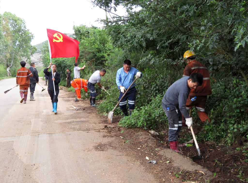6月13日,大屯錫礦三坑黨總支開展“黨員帶頭作表率,安全生產有保障”主題黨日活動,對三號站到1360工業區公路邊的防洪溝、雜草進行全面清理,全坑黨員、入黨積極分子、共青團員共150人參加活動。