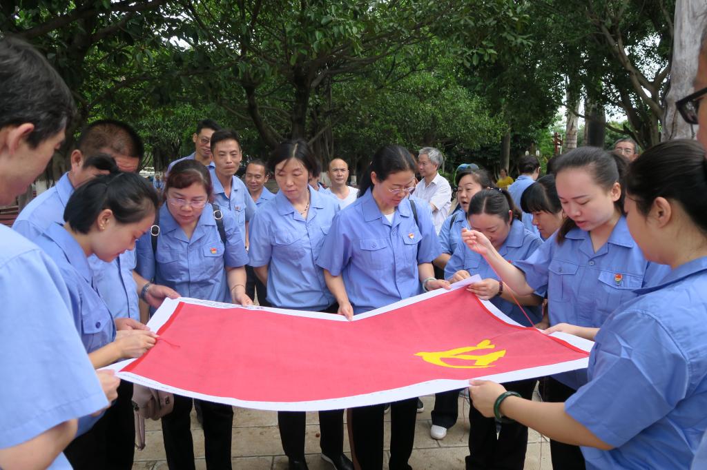 火紅的六月,激情的盛夏。一大清早,黨員們著裝整齊地來到南湖公園,向革命烈士紀(jì)念碑敬獻了鮮花,并集體列隊瞻仰革命烈士紀(jì)念碑,寄托哀思。隨之后,黨支部書記為17名黨員頒發(fā)“政治生日”賀卡。全體黨員在紀(jì)念碑前,面對黨旗重溫入黨誓詞。